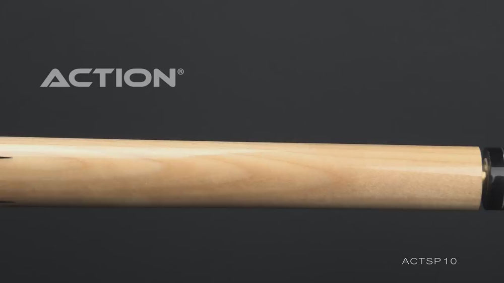 This Action Cue is from the Sneaky Pete Series featuring all natural maple wood with jet black forearm and points design. Built for all players in mind whether you are a beginner, intermediate, or league pro. Made with High quality materials and craftsmanship. Action Cues offer players a variety of cue designs to fit every players style at an affordable price. All Action Cues are backed by a one-year warranty against all manufacturer's defects. This Action Cues Sneaky Pete Jet Black also features: