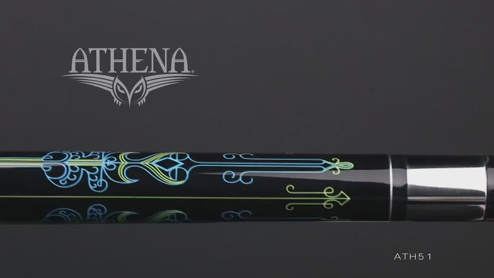 The Athena Cues Blue Pin Stripes offers you the right cue to arm yourself for combat. Athena Cues are crafted using thinner shafts and shorter standard cue lengths encouraging a better bridge, smoother follow through, and enhances the overall balance of the cue. Using only high quality materials, Athena Cues are designed to work well with all players and playing styles guaranteeing nothing will stand between the warrior in you and the table. This Athena Cue features: