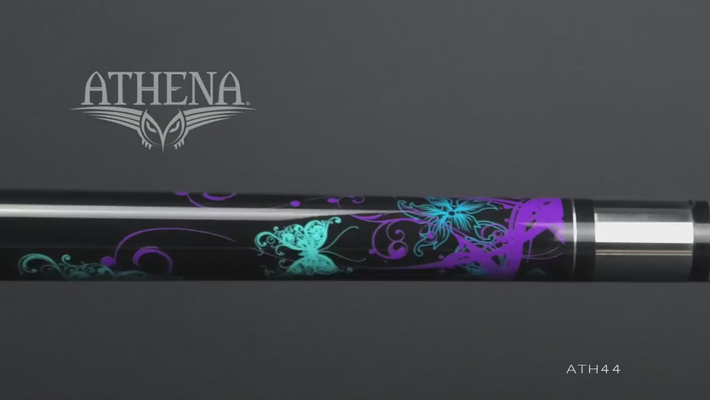 The Athena Cues Butterflies was developed to provide women with a pool cue that suits their physical characteristics. Some of the key features available in Athena Cues are slightly thinner 12.5 mm shafts to promote a better bridge and smoother follow through and a shorter standard length of 57" to create a more natural balance point. This Athena Cue features: