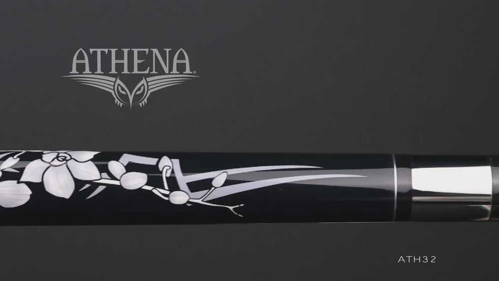 The Athena Cues Tribal and Orchid Flower ATH32 offers you the right cue to arm yourself with for combat. Athena Cues are crafted using thinner shafts and shorter standard cue lengths encouraging a better bridge, smoother follow through, and enhances the overall balance of the cue. Using only high quality materials, Athena Cues are designed to work well with all players and playing styles guaranteeing nothing will stand between the warrior in you and the table. The Athena Cues ATH32 also features:
