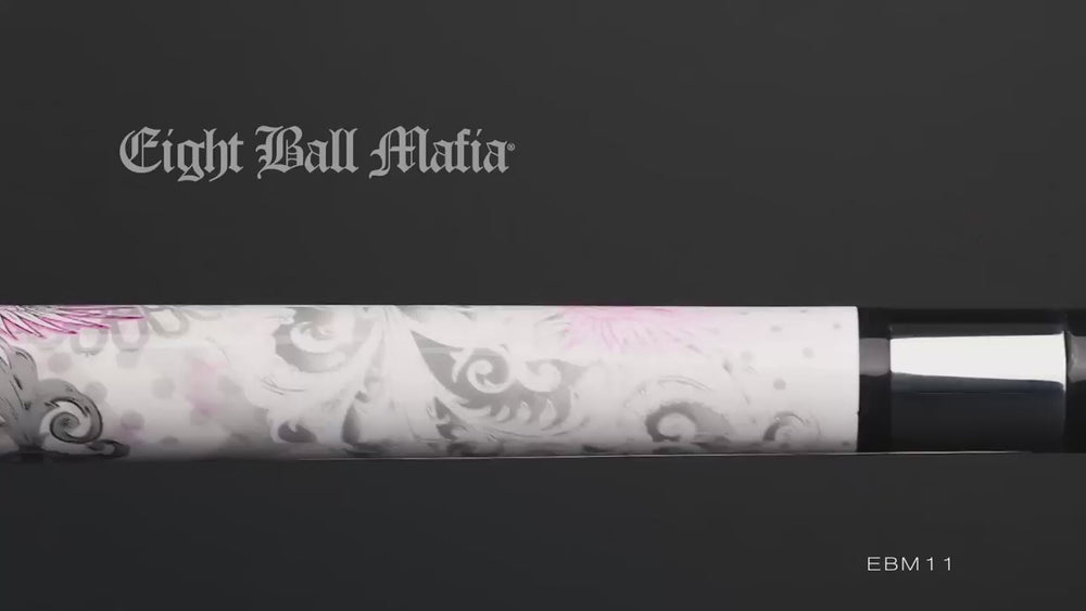 The Action Cues - Eight Ball Mafia Cues EBM11 is a cue with style as tough as your game. All Eight Ball Mafia cues begin with premium cuts of Hard Rock Maple, creating a cue with solid feel that is able to withstand all playing styles. Once the cue is made, unique designs are added which set these Eight Ball Mafia cues apart from the rest. The Action Cues - Eight Ball Mafia Cues EBM11 also features: