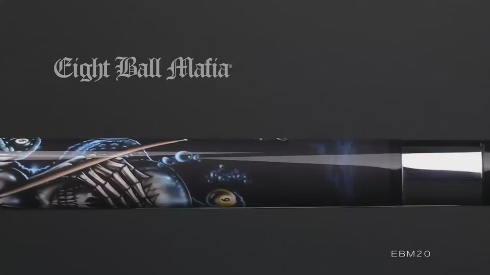Unleash your inner evil with the Eight Ball Mafia EBM20 Play Cue! Featuring a Grunge Art Deathscape design, this cue is equipped with a solid maple shaft and 7-layered tip for ultimate precision. Plus, the black Irish linen wrap adds style and grip. Don't just play, dominate with the EBM20.
