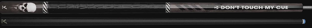 - Design: Carbon + Glass Fiber Construction with an All Black Design with a Graphic overlay of "Don't Touch My Cue" Along the Forearm with a Radioactive Symbol. The Butt Sleeve is Black Colored with a Graphic Overlay of a White Skull and the Word Danger on it