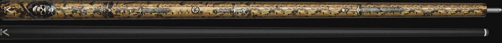 - Design: Carbon + Glass Fiber Construction with a Graphic Overlay Made up of Brown Stained Wood Giving the Impression that it is the side of a boat with Swords and Nautical Stars as well as Skull and Crossbones Cover the Entire Cue