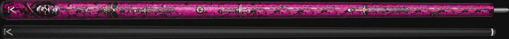 - Design: Carbon + Glass Fiber Construction with a Graphic Overlay Made up of Red Stained Wood Giving the Impression That it is the Side of a Boat with Swords and Nautical Stars as well as Skull and Crossbones Cover the Entire Cue