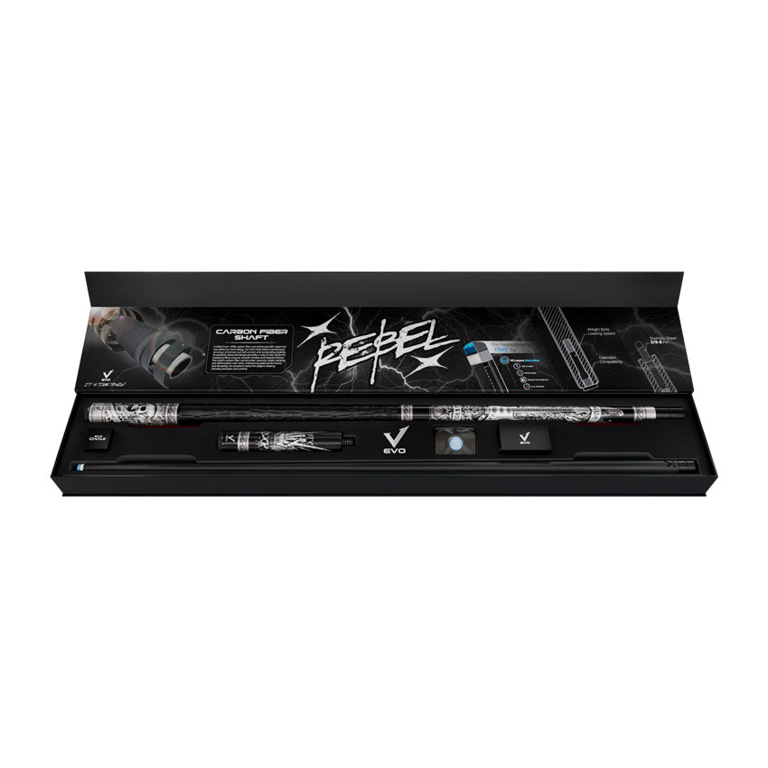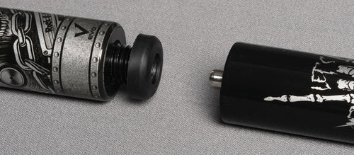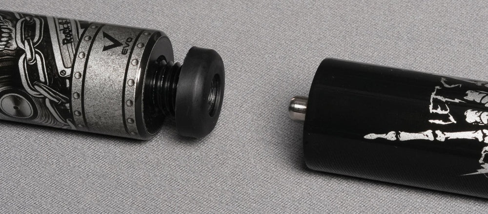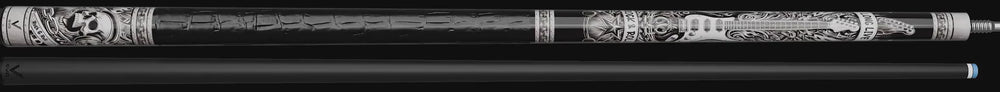 Bring attitude to every shot with this rebellious complete player kit, built for players who refuse to play it safe. This all-in-one set includes a premium playing cue, 6" matching extension for long-reach shots, a high-performance TIME tip, a professional glove for smooth control, and quality chalk—everything you need to dominate the table. The cue features Carbon and Glass Fiber construction wrapped in striking metallic silver and black graphics of skulls, guitars, chains, and flames, delivering pure rock-and-roll energy.