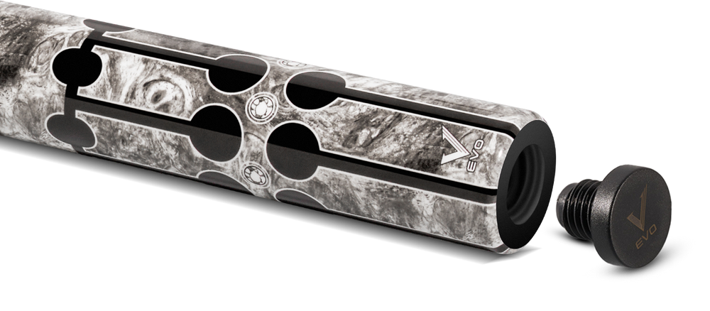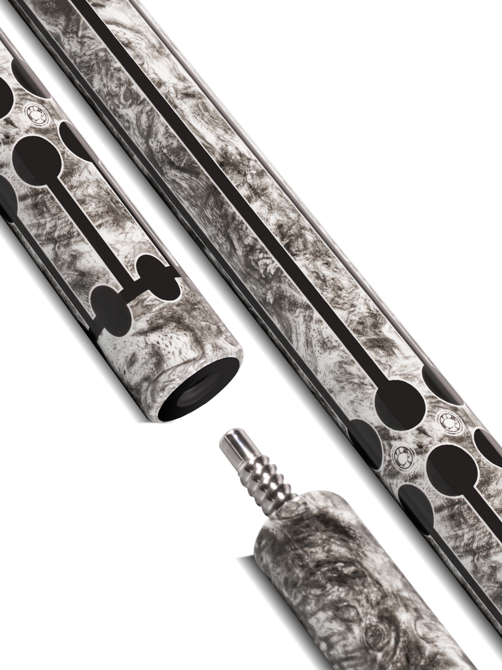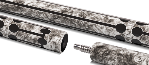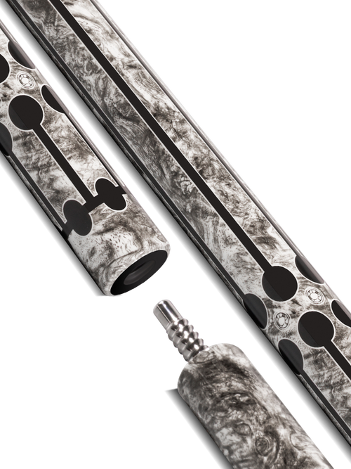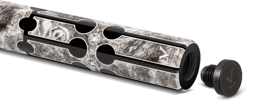 Take command of every break and master every jump with the EVO VALKYRIE Frostbane. This cue combines explosive power with refined elegance, crafted for players who demand both strength and precision. Its carbon and glass fiber core delivers intense energy and exceptional stability, allowing seamless transitions between forceful breaks and delicate control. Featuring a striking white marble graphic with gray and black streaks over the forearm and wrapless handle, it embodies both timeless beauty and formidable power. The 29" carbon fiber shaft with hybrid pro taper ensures smooth, controlled strokes, while the 13.50mm white Bakelite tip maximizes energy transfer. A 3/8 x 8" nonstandard radial joint provides consistent lock-in performance. Bold, balanced, and resilient—EVO VALKYRIE Frostbane is designed to dominate the game.