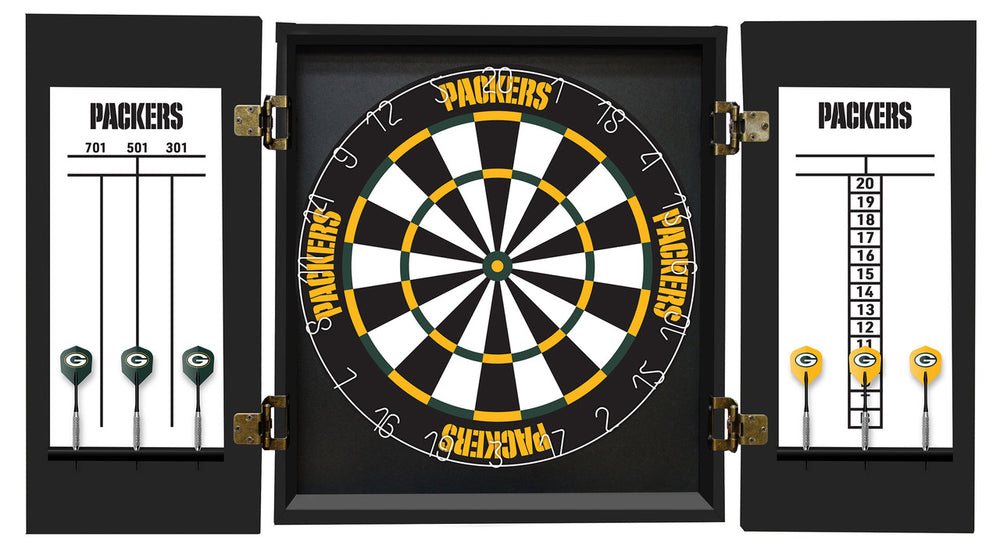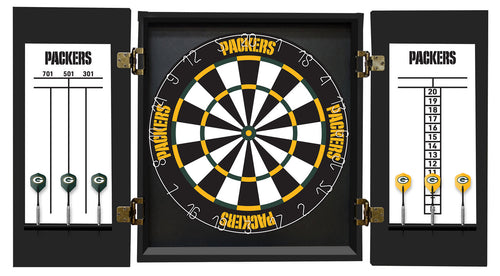 The Green Bay Packers Dartboard Cabinet Set is every Fan's Choice. This officially licensed NFL Dartboard Cabinet Set will bring lots of joy when playing a game of darts with friends and family, plus it will look look great in any room showing off your favorite NFL Team. This NFL Dart Board Cabinet Set comes equipped with all the gear needed to play the game. This Green Bay Packers Dart Board Cabinet Set features: