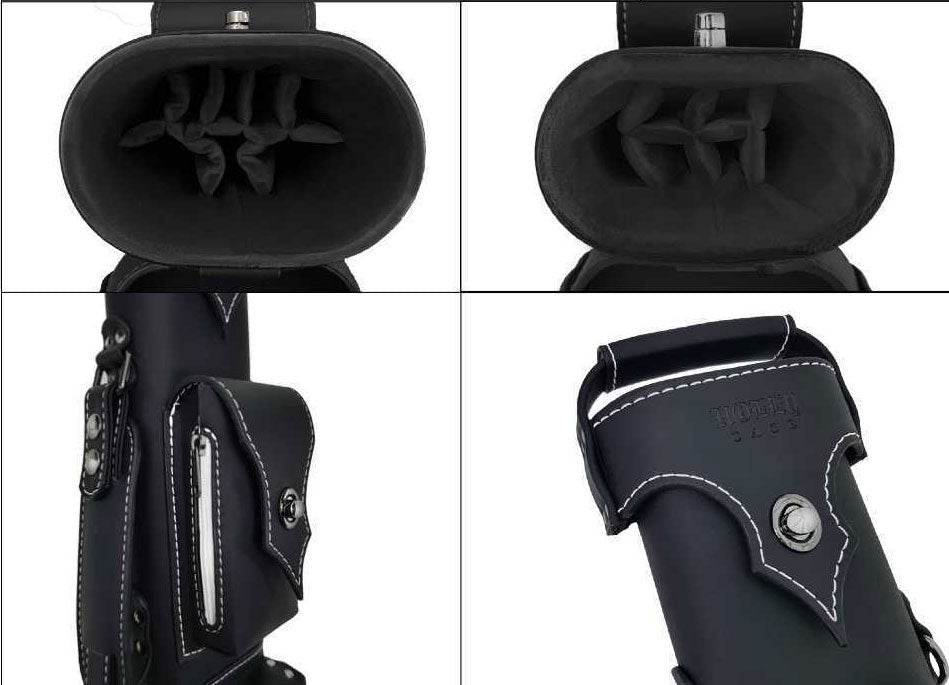 Holly Monochrome Cue Cases are made out of durable synthetic leather that is both water-resistant and lightweight. Adjustable carrying handles and shoulder straps make this case ideal for players constantly on the go. Featuring, multiple compartments for sufficient storage space with easy access. Accented with intricate contrast-colored stitching and zipper fastenings. Added matching plush velvet interiors to protect your cues and accessories. Available in Black, White, and Grey Stitching.