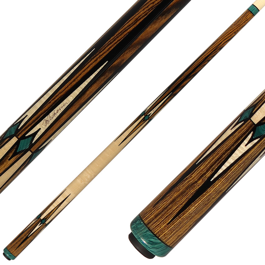 Introducing the J Pechauer P13R Pro Series Pool Cue - a stunning display of craftsmanship and style. With a Bocote butt, simulated ebony, and intricate malachite inlays, this cue is sure to impress. The comfortable and sturdy handle is made of figured maple, adding both beauty and functionality to your game. Elevate you're playing experience with this high-end pool cue.