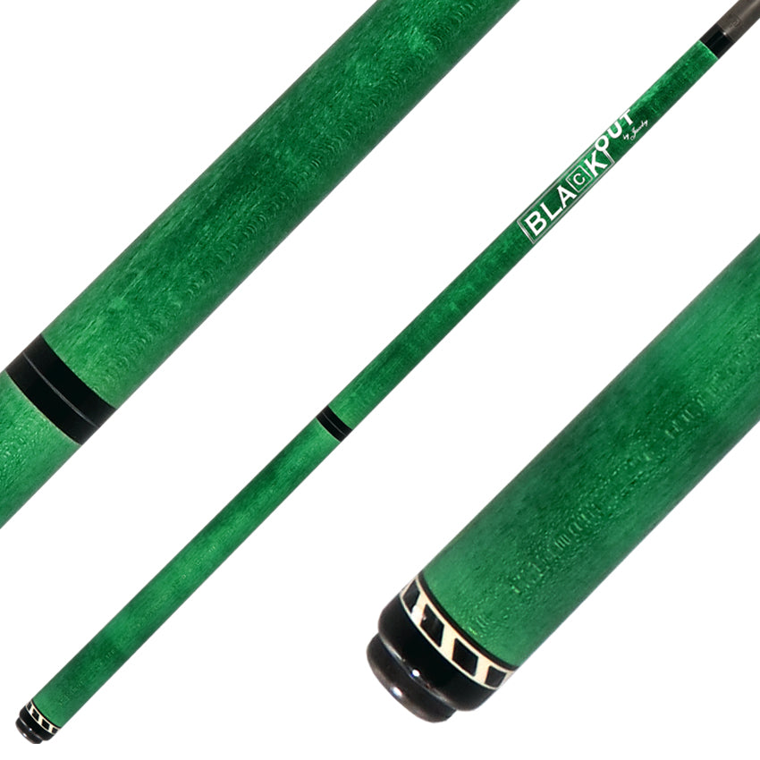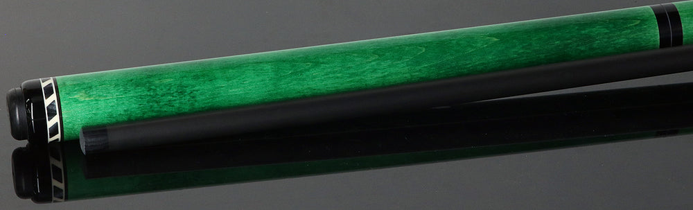The Jacoby Black Out Carbon Fiber Green Break Jump Cue is a bold three-piece design featuring Jacoby’s BlackOut carbon fiber break/jump shaft for exceptional strength and precision. The butt is accented with a striking white ring and silver inlaid mirrors, adding a touch of daring style. Its unique one-piece ferrule tip delivers enhanced durability, consistent performance, and powerful shots, making it ideal for players who demand both power and flair when breaking or jumping.