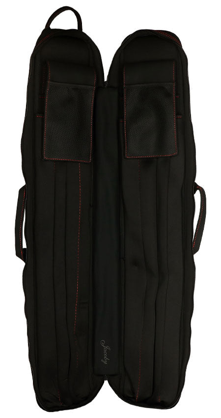 Experience unparalleled luxury and sophistication with the Jacoby Silver Fox Butterfly 4x8 Soft Cue Case. Expertly designed and crafted from top-quality materials, this case provides superior protection for your cues with its soft neoprene lining. The durable sueded backpack straps showcase the elegant Jacoby logo and offer a combination of comfort and style for effortless transportation. Complete with a three-cue joint protector holder and sturdy steel hardware, this case showcases the highest level of exclusivity and attention to detail. Elevate your playing experience with the Jacoby Silver Fox Butterfly Cue Case, where impeccable design meets unparalleled functionality.