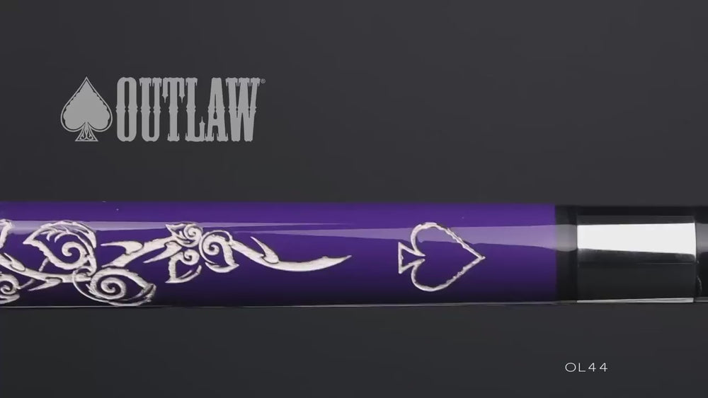 Outlaw Cues capture the essence of the Wild West and deliver something completely unique in today's pool cue market. This Outlaw Cue is from the Desert Rose Series featuring original designs inspired by tattoos, and are carved by master craftsmen, then "branded" by hand using a blowtorch. This Outlaw Cue Purple Rose features: