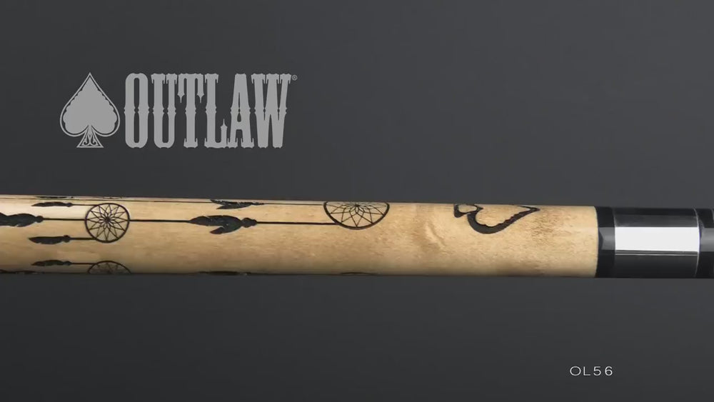 Outlaw Cues capture the essence of the Wild West and deliver something completely unique in today's pool cue market. Outlaw Cues' original designs were inspired by tattoos, and are carved by master craftsmen, then "branded" by hand using a blowtorch. This Outlaw pool stick features:
