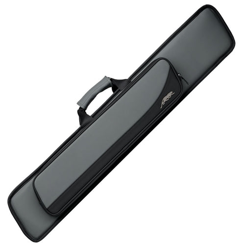 The Predator Roadline 4x8 Butterfly Soft Pool Cue Case offers premium protection with a stylish edge. Crafted from durable ultra-vinyl with extra padding and double-stitched construction, it safely holds up to 4 butts and 8 shafts. The gray and black design features elegant Predator Cat accents and an embroidered logo strap. Dual padded, swiveling, and removable shoulder straps ensure versatile carrying comfort. A breathable mesh pocket provides ample space for accessories, while the large dimensions and jump handle extension keep your cues secure and accessible. Weighing just 3.7 pounds, this sophisticated case combines functionality with refined style.