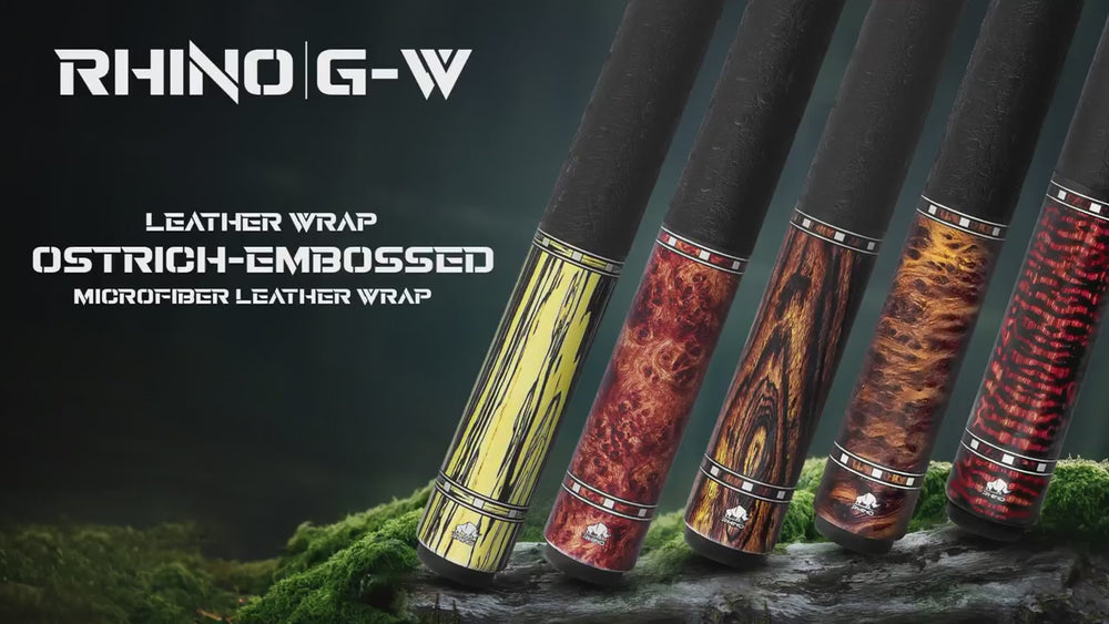 The Rhino G-W Series Pool Stick features traditional wood patterns, four rings, and a luxurious microfiber ostrich leather wrap for comfort and style. Make a statement at the pool table and take your game to the next level with this standout cue. (Go ahead, show off a little!)