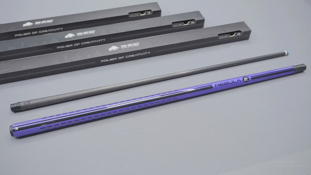 Elevate your game with the Rhino Nebula 2 No Wrap Pool Cue in Amethyst Purple, a refined evolution of high-performance craftsmanship. This cue features a meticulously reengineered carbon structure in both the shaft and butt, offering exceptional flexibility, power, and precision. Designed for discerning players, the Nebula 2 combines advanced technology with elegant design to deliver unparalleled control and sophistication in every shot.