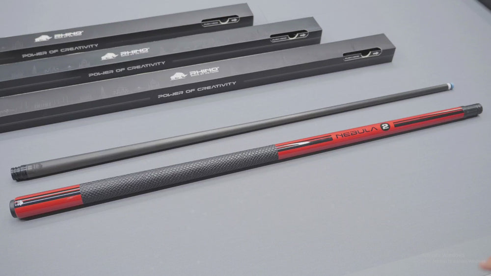 The Rhino RCNEB2SWRD Nebula 2 Pool Cue in Crimson Red redefines high-performance play with its fully reengineered carbon shaft and butt. This advanced design delivers exceptional flexibility, power, and precision, allowing for superior control with every shot. The vibrant crimson red finish combined with a sport wrap ensures a secure grip and elegant appearance, making it the perfect choice for discerning players seeking both innovation and style. Elevate your game with this sophisticated cue built for precision and power.