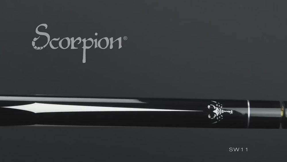 Scorpion cues are designed with the durability and performance required by top professionals! Available in a variety of colors and styles, Scorpion cues come standard with a 12mm or 13mm fiberglass coated shaft for extra dent and warp resistance, and a Quality tip for reliable performance.