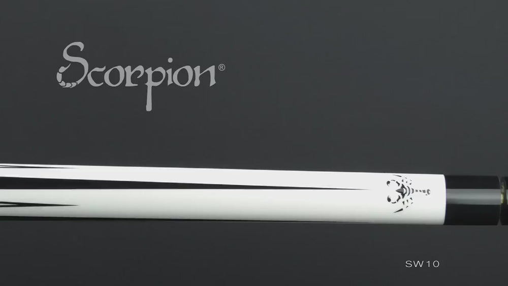 Scorpion cues are designed with the durability and performance required by top professionals! Available in a variety of colors and styles, Scorpion cues come standard with a 12mm or 13mm fiberglass coated shaft for extra dent and warp resistance, and a Quality tip for reliable performance.